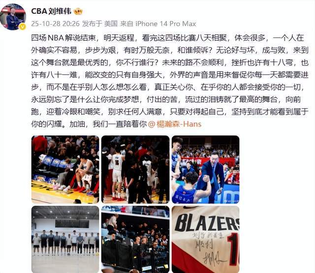四場NBA解說結束,明天返程,看完這四場比賽八天相聚,體會很多,一個人在外確實不容易,步步為艱,有時萬般無奈,和誰傾訴?無論好與壞,成與敗,來到這個舞臺就是最優(yōu)秀的,你不行誰行?未來的路不會順利,挫折也許有十八彎,也許有八十一難,能改變的只有自身強大,外界的聲音是用來督促你每一天都需要進步,而不是在乎別人怎么想怎么看,真正關心你、在乎你的人都會接受你的一切,永遠別忘了是什么讓你完成夢想,付出的苦,流過的淚鑄就了最高的舞臺,向前跑,迎著冷眼和嘲笑,別求任何人滿意,只要對得起自己,堅持到底才能看到屬于你的閃耀。加油,我們一直陪著你!