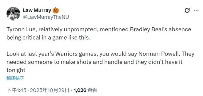 然而,在賽后,在采訪(fǎng)中,快船主帥泰倫-盧甚至不經(jīng)意間提到比爾的缺陣對(duì)這樣的比賽很關(guān)鍵。在評(píng)論區(qū)中,網(wǎng)友怒懟:“還指望靠500萬(wàn)的比爾來(lái)救場(chǎng)?”
