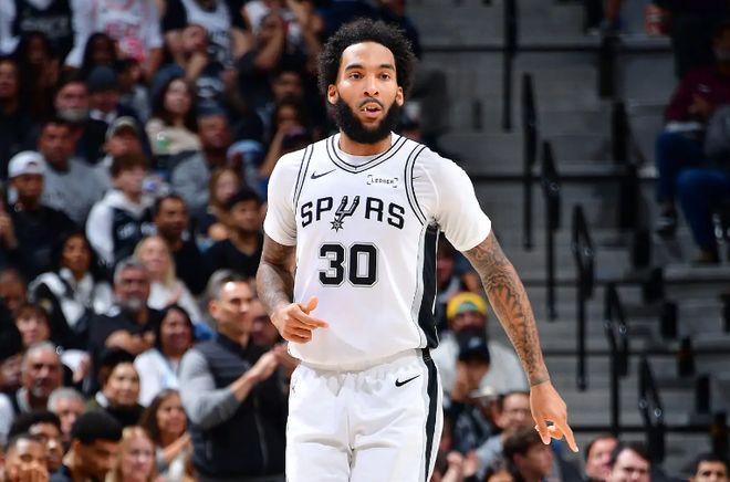 本場(chǎng)比賽中,馬刺的先發(fā)鋒線球員朱利安-尚帕尼(Julian Champagnie)的表現(xiàn)算是令人喜憂參半。尚帕尼全場(chǎng)出場(chǎng)30分33秒,投籃6中1,三分線外4中0,得到了2分5籃板2助攻2搶斷1蓋帽的數(shù)據(jù),還有1次失誤和1次犯規(guī),正負(fù)值則是達(dá)到了全場(chǎng)最高的+24。作為一名投手,尚帕尼在進(jìn)攻端的效率并不理想,他的得分能力和投射能力完全沒(méi)有發(fā)揮出來(lái)。尚帕尼進(jìn)攻端的表現(xiàn)實(shí)在是乏善可陳,他并沒(méi)有幫助球隊(duì)做到拉開(kāi)空間。不過(guò)另一方面,尚帕尼在防守端的表現(xiàn)也是相當(dāng)突出的,他也是有著相當(dāng)不錯(cuò)的防守效率,他的個(gè)人防守能力相當(dāng)不錯(cuò)并且給對(duì)手制造了不小的麻煩。尚帕尼在場(chǎng)上時(shí)球隊(duì)的局面也是相當(dāng)不錯(cuò)的,這也能夠體現(xiàn)在他超高的正負(fù)值上。雖然數(shù)據(jù)不太出彩,雖然進(jìn)攻效率糟糕,但是尚帕尼還是起到了自己的作用的,他也是為球隊(duì)的這場(chǎng)勝利做出了自己的貢獻(xiàn)。